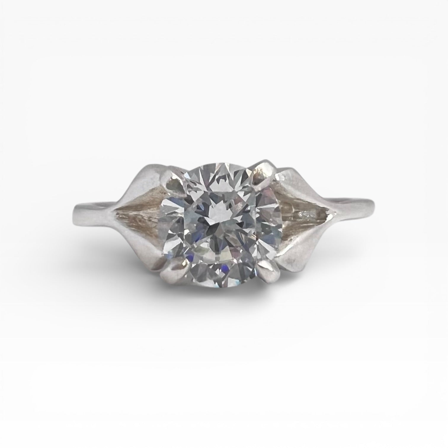 We work in golds and platinum and can add diamonds or gemstones, whatever your preference. Engagement rings start at $1500 and go up from there, depending on the materials used. *Price shown is for 14k gold and natural accent diamonds but DOES NOT include center stone*