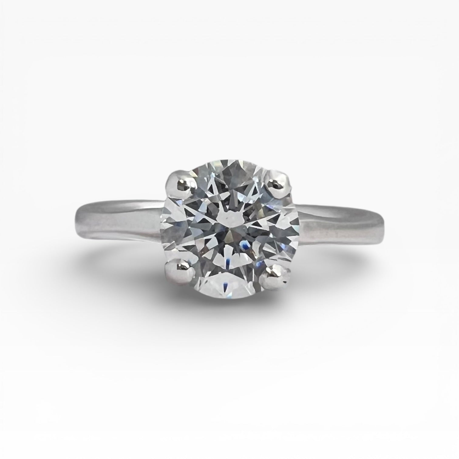 The e. scott version of a traditional solitaire. A 1.5mm tapering shoulders band and organic silhouette hold a center stone of your choice. Can be set with accent diamonds upon request.