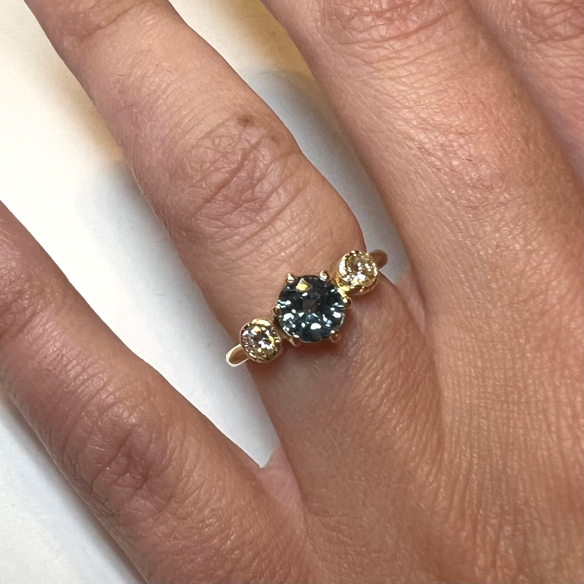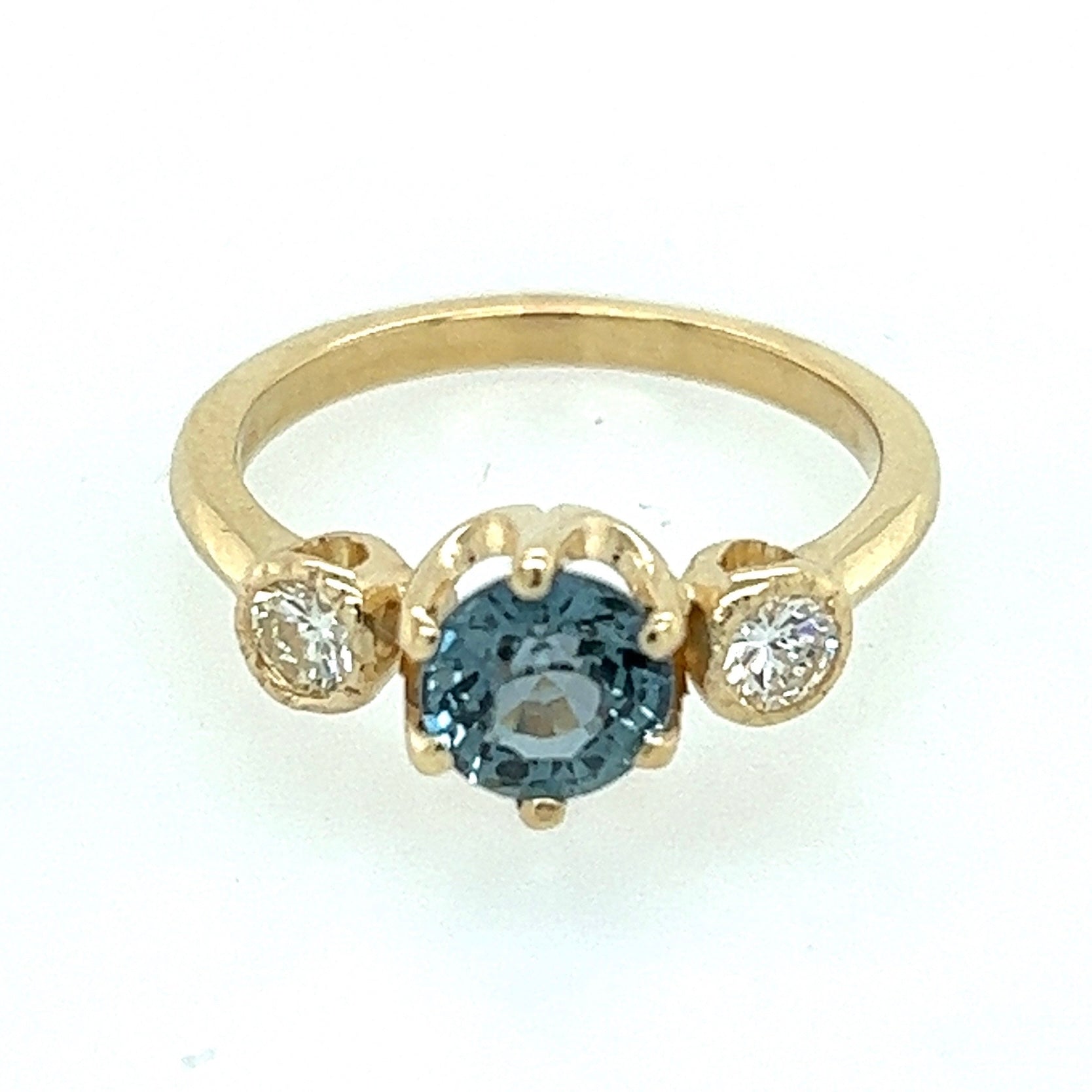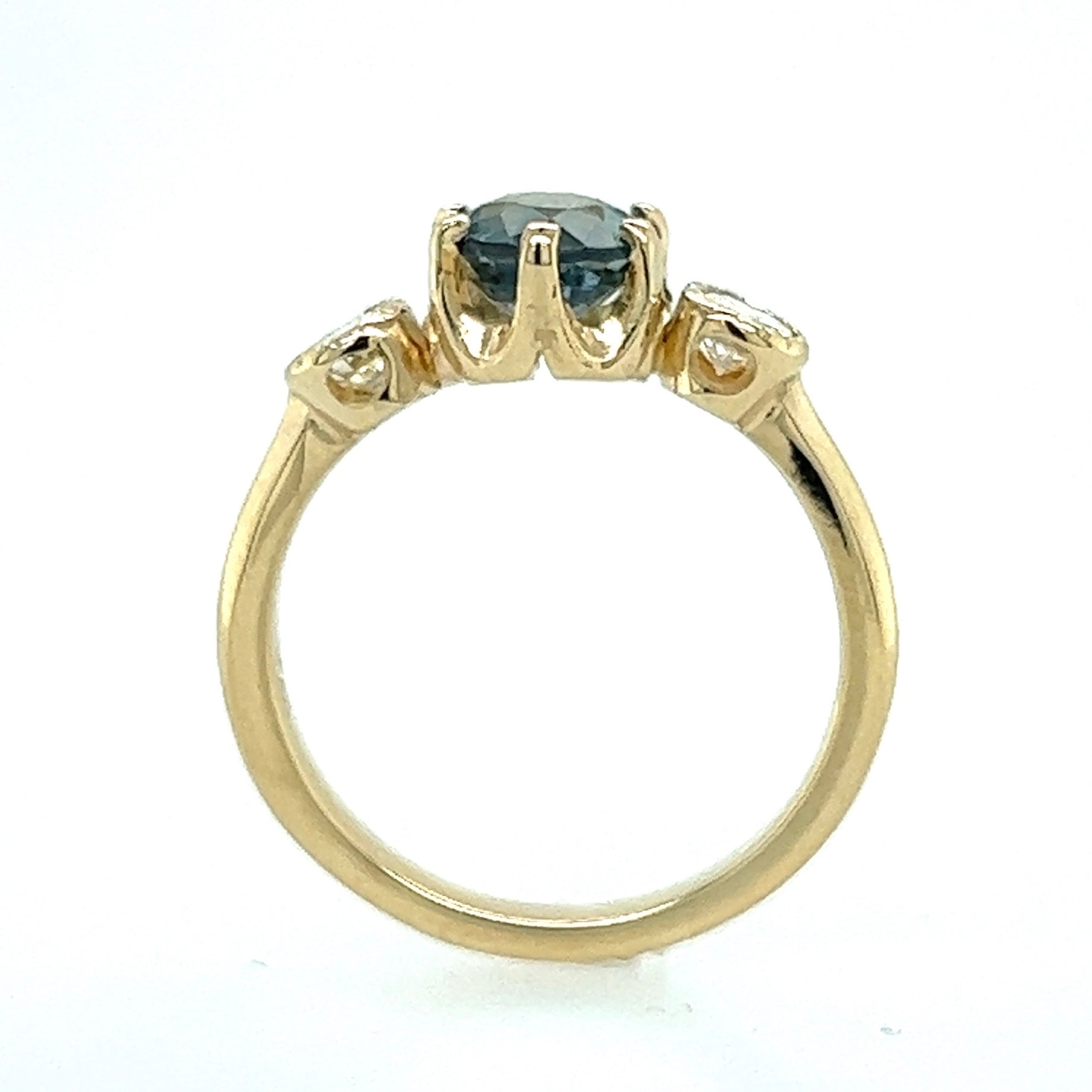 The Queen- Teal sapphire, reclaimed diamonds & 14k Yellow Gold
